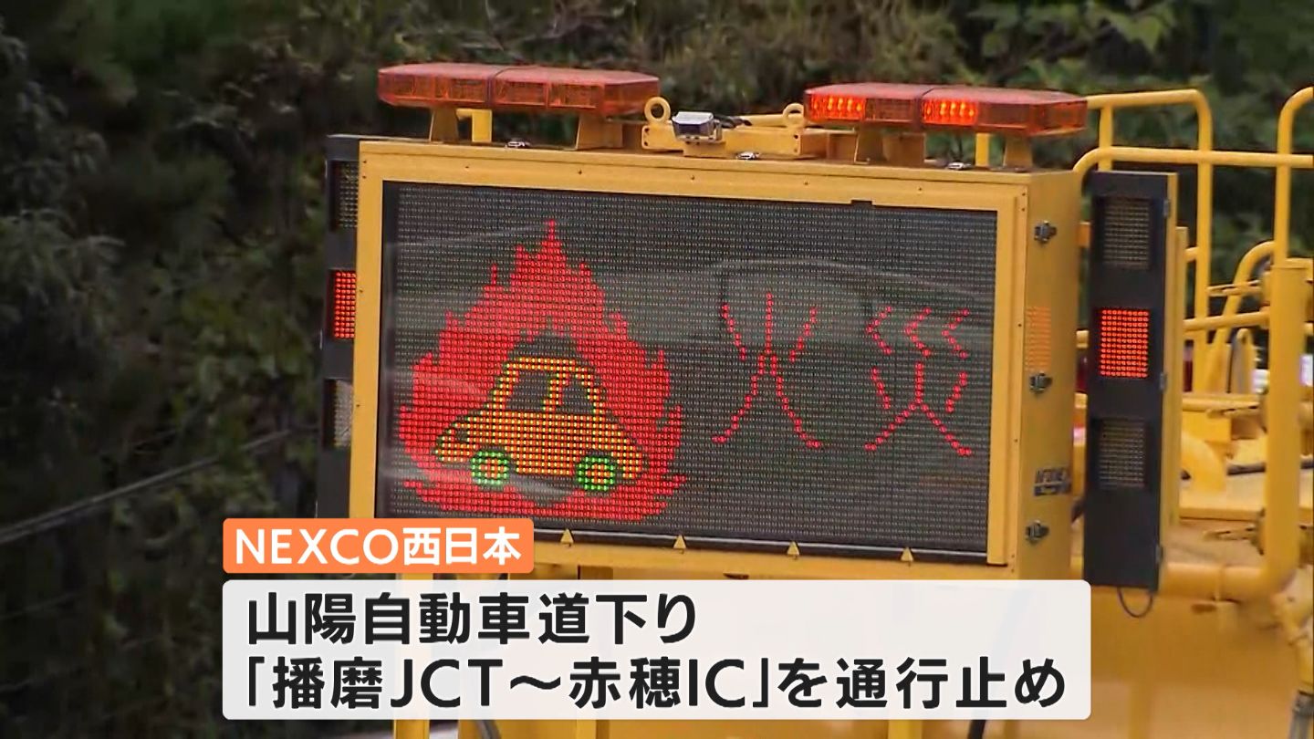 火災の影響で、トンネル内部の壁など約400mが甚大な損傷を受け、車両の通行に危険が及ぶとして、NEXCO西日本では、尼子山トンネルの下りの前後の区間「播磨JCT~赤穂IC」を通行止めにしています。