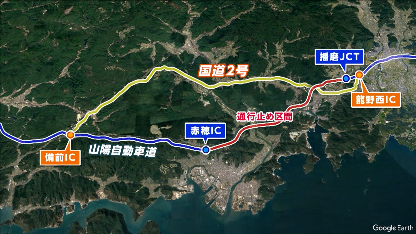 火災事故の影響で通行止めの続く山陽自動車道です。高速道路を使って岡山市街地や四国方面に向かうためには、迂回しなければなりません。