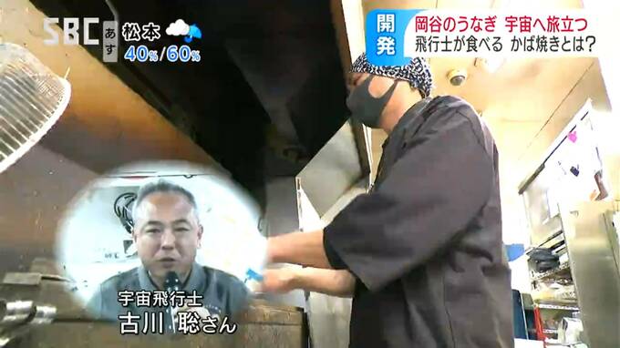岡谷の老舗料理店のかば焼きが宇宙飛行士のもとへ。