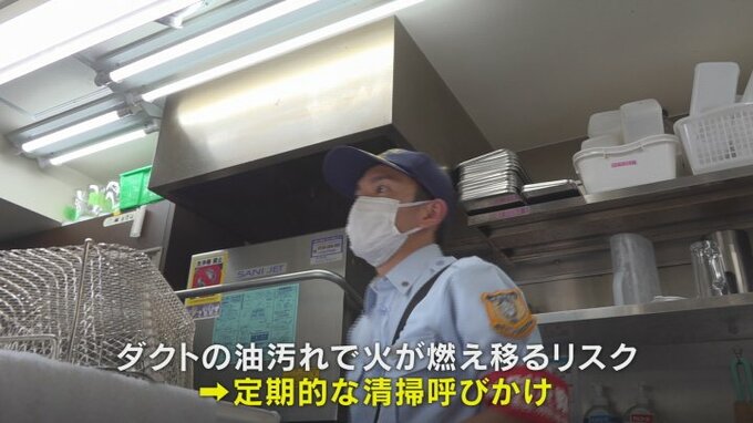 消防はダクトの油汚れが著しいと火が燃え移るリスクがあることも説明し、定期的な清掃も呼びかけました。