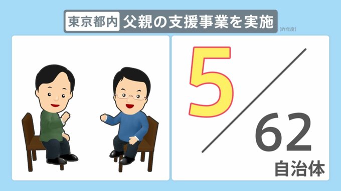 例えば東京都では、全62自治体のうち2022年度「父親の支援事業を実施している」と答えた自治体は5つにとどまっています。