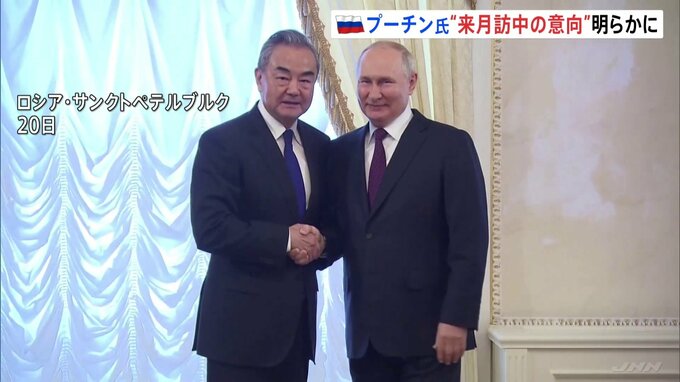 ロシアのプーチン大統領は中国の王毅政治局員兼外相と会談し、来月中国を訪問する意向を明らかにしました。プーチン大統領は20日、ロシアを訪問中の王毅外相とサンクトペテルブルクで会談を行いました。中国外務省…