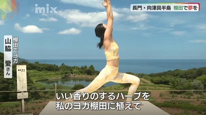 夢をかなえたい。棚田はいつしか、そういう人が集まる場所になりました。市内在住の山脇愛さんもその1人。ヨガの愛好家である山脇さんは和田さんからヨガをする場所に棚田を勧められました。勧められるままにやってみると、その魅力にとりつかれました。棚田に手足をつくと「大地から直接エネルギーをもらっている」ような感覚になるそうです。