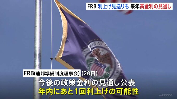 アメリカの中央銀行にあたるFRB=連邦準備制度理事会は2会合ぶりに利上げを見送りました。一方で、来年も高い金利を続ける新たな想定を示しました。アメリカのFRBは2会合ぶりに利上げを見送り、年5.5%を上限とする…
