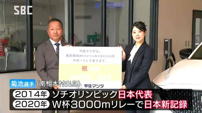 菊池選手は、21日、車両貸与を受けることが決まった甲信マツダの佐久市の店舗で、3年後のミラノ・コルティナ冬季オリンピック出場を目指すと決意を表明しました。