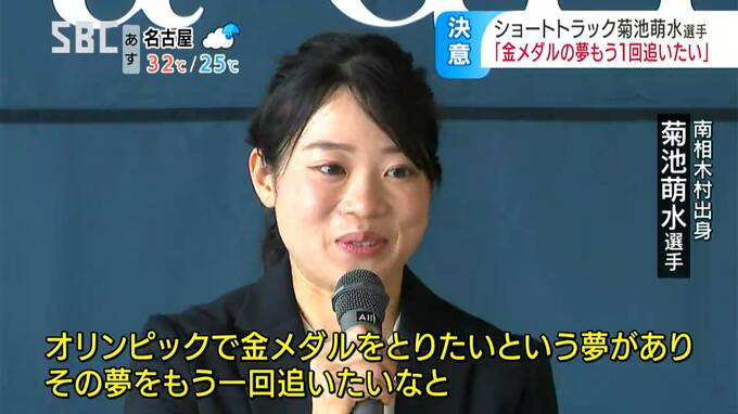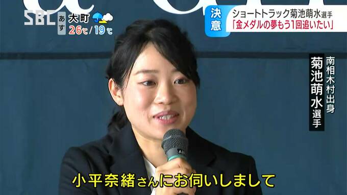 長野県南相木村出身でスピードスケート・ショートトラックの菊池萌水(もえみ)選手が、次のオリンピック出場を目指すと決意を語りました。