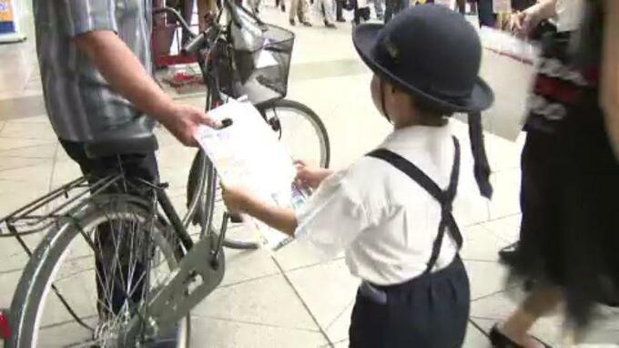 21日から秋の全国交通安全運動がはじまり、愛媛県松山市内では幼稚園児たちが商店街をパレードし、交通安全を呼びかけました。「こうつうじこがなくなるようにおねがいしながら、さいごまでげんきよく、こうし…