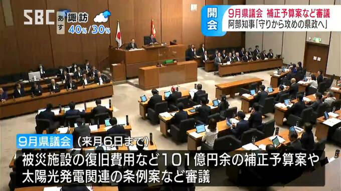 長野県の9月県議会が開会し、阿部知事は「守り」から「攻め」の県政に転換し、少子化対策などに取り組んでいく考えを示しました。