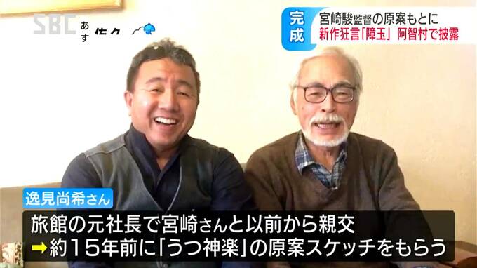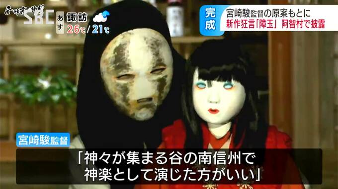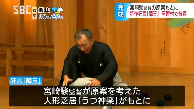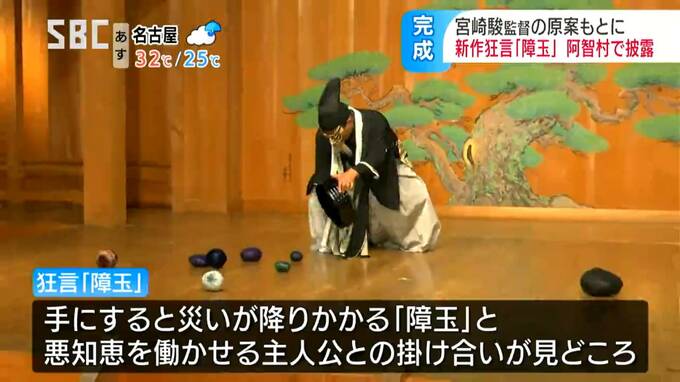 数々のアニメ作品を手がけてきた映画監督・宮崎駿(みやざき・はやお)さんの原案をもとにした新作の狂言が阿智村でお披露目されました。