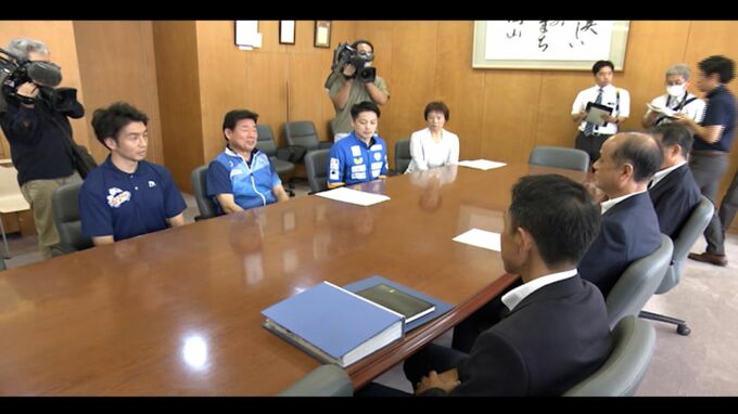 岡山市が建設を目指す新アリーナについて、岡山シーガルズをはじめプロチームの関係者が大森岡山市長のもとを訪れ、岡山のスポーツを盛り上げるために「実現を」と陳情しました。