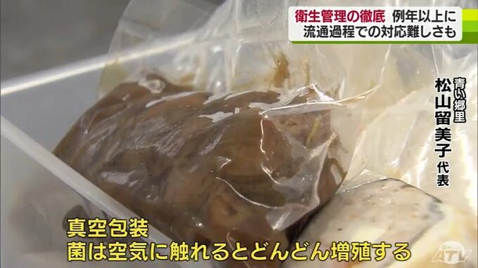 「流通していく過程でどういう温度帯で管理されているかというのが一旦手が離れると分からない。行った先で冷蔵庫で保管されないでその辺に直置きで売ったりするとアウト。遠くなればなるほどよっぽど気を付けないと。特に夏は」