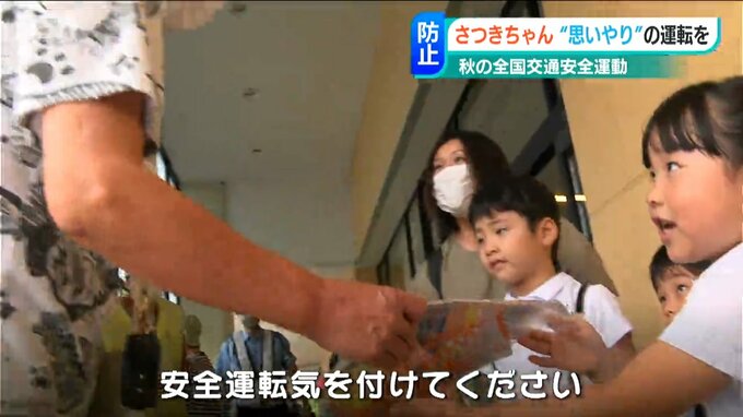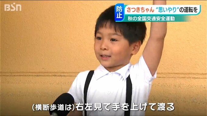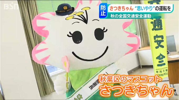 ドライバーに”思いやり”のある運転を呼びかけた園児たちは、1日警察署長として一緒に参加した秋葉区のマスコット『さつきちゃん』から、横断歩道の渡り方も教わっていました。