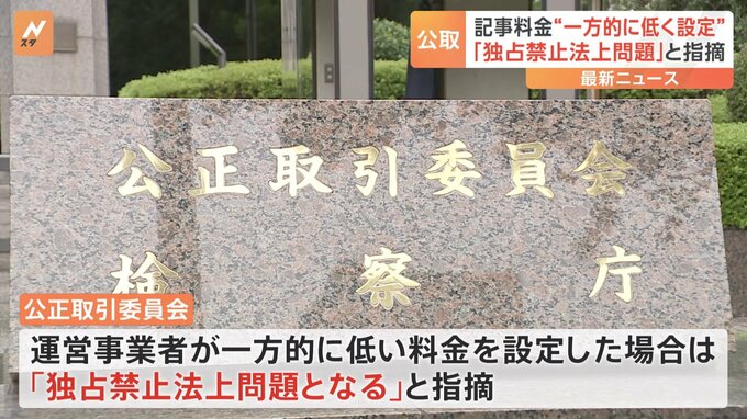 公正取引委員会は、報道機関がニュースサイトに記事を提供する際の使用料が適正かについて調査を行い、運営事業者が使用料を一方的に低く設定した場合、独占禁止法上の問題になると指摘しました。調査結果によりま…