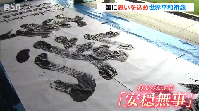 高校生らが筆に思いを込めて世界平和を祈ります。21日、国連が定める「世界国際平和デー」に合わせて新潟市中央区で奉納イベントが開催されました。大きな白紙に力強く筆をおろす高校生。 21日に新潟市中央区の護…