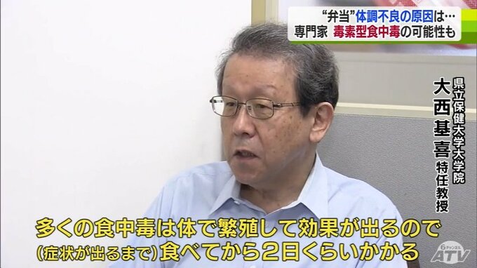 女性は病院で治療を受けたあと自宅療養になりましたが息子は症状がより重く2日間入院して9月18日に退院しました。体調不良の原因として、どのようなことが起きていた可能性があるのか。青森県立保健大学大学院で食中毒や感染症を研究している大西基喜特任教授は宮城県の女性が症状が出たのは弁当を食べてから2時間半後と短時間であることが大きな特徴だとしています。