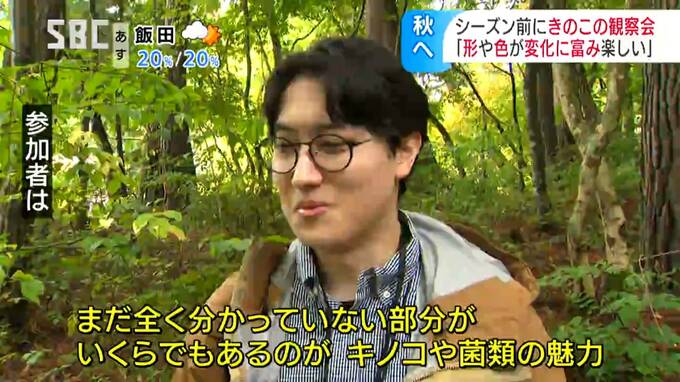 きのこの観察会は、長野市のホクト生物科学振興財団が毎年秋に開いているもので、きのこの栽培を手がける業者や愛好家など、県の内外からおよそ40人が参加しました。
