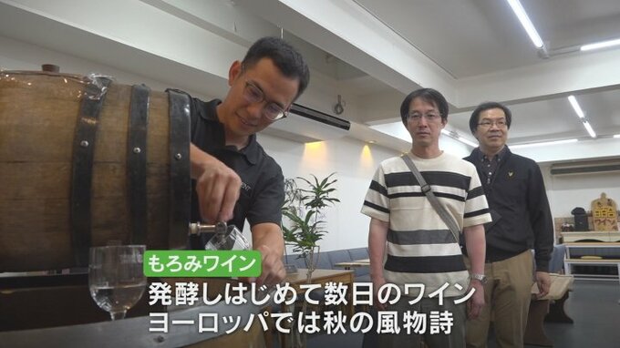 「もろみワイン」はブドウを搾った果汁に酵母を加え発酵し始めてから数日のワインで、ヨーロッパではこのワインを味わうことが秋の風物詩となっています。