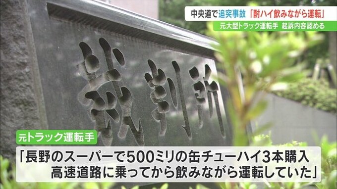 22日の裁判で元運転手は起訴内容を認め「長野県のスーパーで500mlの缶チューハイ3本を購入し、高速道路に乗ってから飲みながら運転していた」などと話しました。