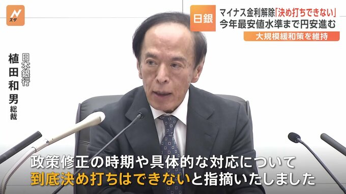日銀はきょうまで開かれた金融政策を決める会合で大規模緩和策の維持を決定しました。日本銀行 植田和男総裁「まだ賃金上昇に伴う2%の持続的・安定的なインフレが見通せる状況にはなっていない」日銀は金融政策決…