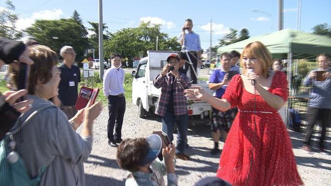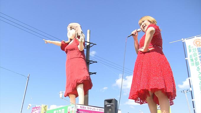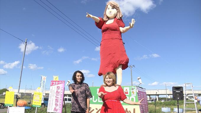 青森市の国道沿いに約400体の手作りのかかしが並ぶ「かかしロード280」。そのシンボルかかしとなっているのは青森県十和田市出身のものまねタレント「りんごちゃん」です。22日、本人が登場し会場を盛り上げました。