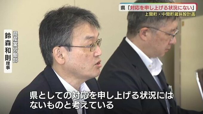 中間貯蔵施設の調査・建設に向けた手続きに同意しないよう知事に求めた団体に対し、県が回答しました。