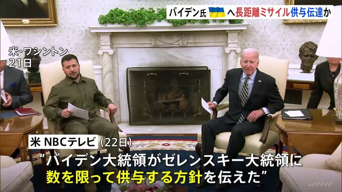アメリカのバイデン大統領がウクライナのゼレンスキー大統領との会談で、長距離ミサイル「ATACMS」を供与する方針を伝えていたとアメリカメディアが報じました。アメリカのNBCテレビは22日、バイデン大統領が21日…
