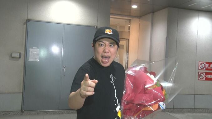 プロポーズされる時は化粧をしていたいと言っていたので…思い立って指輪を買っていたんですけど、急にその日にプロポーズしようと思ってバラを買って 指輪をこっそり取って携帯(電話)で桑田佳祐さんの「幸せのラストダンス」っていう、めっちゃそれが結婚の歌なんですよ。それでプロポーズしようって決めていて… 花束持ってドアの前で。正直 結構、感極まっちゃって(自分が)泣いちゃって「一緒にいてください」って言ったんですけども奥さん、急すぎてソファーで寝ていたんですよ。テレビ観ながら急すぎて「今ちゃう、今ちゃう」って抱腹絶倒して 爆笑されました