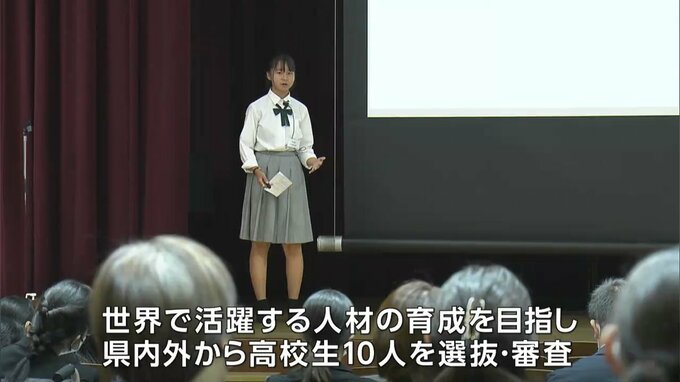 国際社会で活躍できる人材を育成しようと大学の同窓会が開いているもので、会場には一次審査を通過した県内外の高校生10人が集まりました。