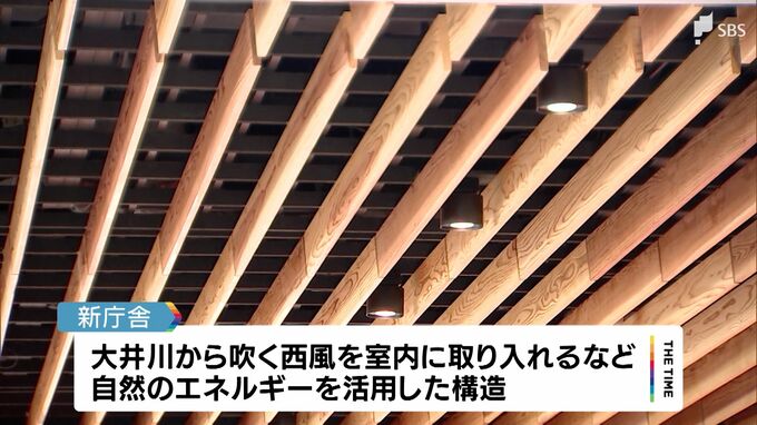 新しい庁舎は、大井川から吹く「西風」を室内に取り入れるなど、自然のエネルギーを活用した構造が特徴です。