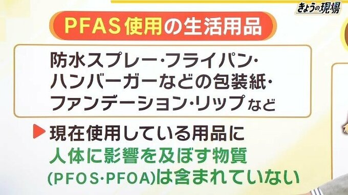 ―――PFASというものは、水や油を弾く性質があり、実は生活に身近なものに使われています。例えば、防水スプレー、フライパン、ハンバーガーなどの包装紙、あとファンデーションやリップなど割と身近な化粧品にも使われているということです。ちょっと心配に思うかもしれませんが、現在使用している用品に、人体に影響を及ぼす物質(PFOS・PFOA)は含まれていないと、そう考えていいんですか。