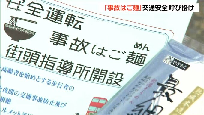 新潟市中央区の県道で警察官らが道行くドライバーに配っているのは、交通事故防止を呼びかけるチラシと“乾麺”…。9月21日から始まった秋の『全国交通安全運動』に合わせ、新潟市中央区でユニークな啓発運動が行…