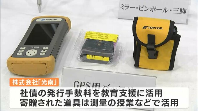 土木や建築に関心のある学生が減るなか少しでも業界に興味をもってもらおうと、光南では銀行とともに社債の発行手数料の一部を教育支援に充てていて、購入した道具は測量の授業などで活用されるということです。