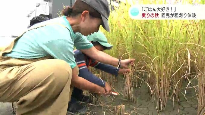 高知市の園児たちが自分たちで植えた稲の収穫体験をしました。「よいしょ、よいしょ」と声を出しながら、一生懸命稲刈りをしました。「よいしょ、よいしょ、よいしょ、うわぁー、でーきた」稲刈り体験をしたのは高…