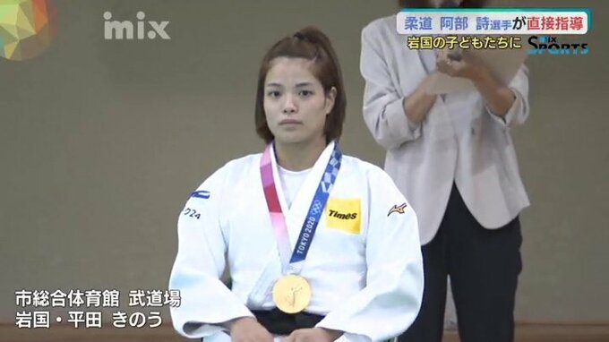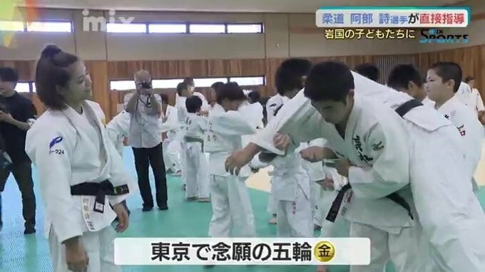 東京オリンピック柔道女子52キロ級の金メダリスト阿部詩選手の柔道教室が、山口県岩国市で開かれ、子どもたちが世界のトップアスリートから直接指導を受けました。