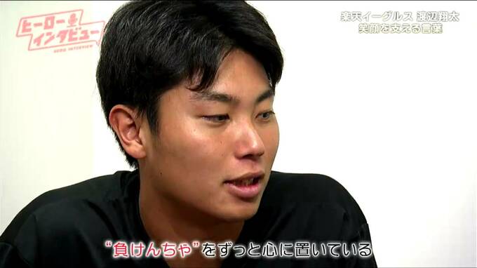 「小さい頃からずっとお父さんに言われた言葉なんですけど、北九州は”ちゃ”を語尾につけるんですけど、”負けるな”という言葉で”負けんちゃ”んっていう・・・。ライバルだったり相手チームだったりに負けるなという気持ちは持っとけと言われて、勝てるって思ったら油断があるから、ずっと負けるなっていう気持ちを持って追うもののほうが強い、って言うじゃないすか、それと一緒で、勝てる気持ちを持ってるのではなく、負けない気持ちを持ってやっていけと言われたので、僕は”負けんちゃ”っていう言葉をずっと心に置いている言葉」