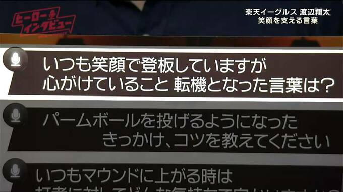 渡辺投手の魅力の一つが弾ける笑顔、ファンからも質問が多く寄せられました。