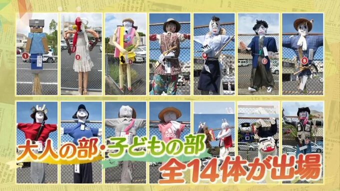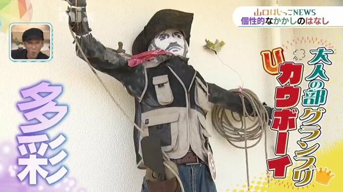かかしコンテストとは、9月はじめにこの地域で開催されたイケている「かかし」No.1を決めるコンテスト。大人の部・子どもの部に分かれており、今年は全14体が出場。東岐波小学校教頭などからなる審査員が表現力・芸術性・独創性・技術力を総合的に評価し、グランプリを選出します。
