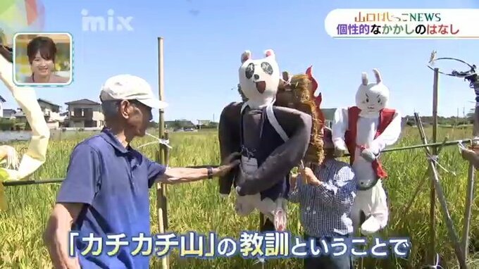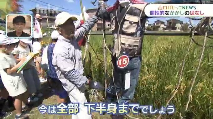 「そうなんですよね。本来はね。昔は、ほとんどが上半身のかかしだから、田んぼの中に立てても大丈夫だったんです。今は全部、下半身まであるでしょう?そうすると、隠れてしまうので」
