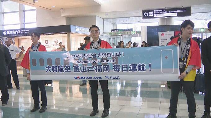 新型コロナの影響で休止していた韓国の航空会社、大韓航空の福岡―釜山便が約3年半ぶりに運航を再開しました。 RKB小畠健太「およそ3年半ぶりとなる運航再開の第1便が今、福岡空港に降り立ちました」福岡空…