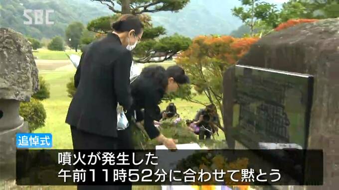 追悼式では9年前に噴火が発生した午前11時52分に合わせて犠牲者に黙とうが捧げられ、鎮魂の祈りに包まれました。