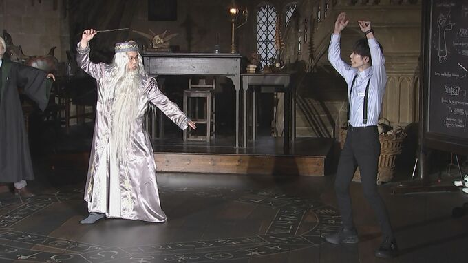 杖で魔術を駆使する「ワンド・コンバット」体験では、せいやさんと共に体験をする映画ファン4人が、各々思い思いのコスプレをして参加。せいやさんは司会が紹介する前にそれぞれが誰のコスプレをしているか呼びあげるという、さすがの作品愛を見せていました。