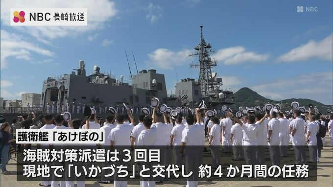 アフリカ・ソマリア沖の海賊対策のため、海上自衛隊の護衛艦が27日、長崎県佐世保を出港しました。出港したのは、佐世保を母港とする海上自衛隊の護衛艦『あけぼの』です。『あけぼの』は、ソマリア沖のアデン湾で…