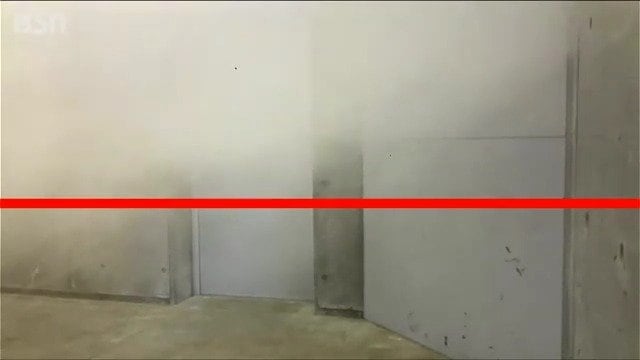 実際の火事では、煙はかなりのスピードで充満しますが、実は「中性帯」と呼ばれるクリアな空気の層と煙の層との“境目”が発生します。