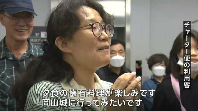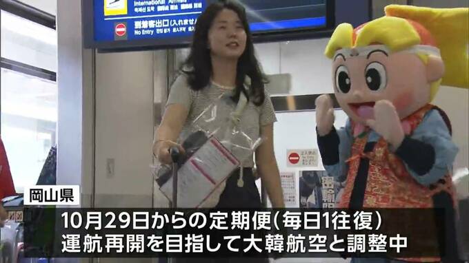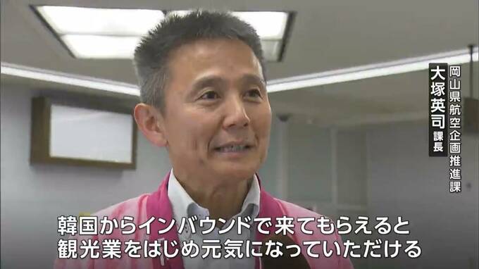 岡山県では、大韓航空との間で来月29日から毎日1往復での定期便再開を目指して調整を続けていて、今回、大韓航空側が需要を把握するためにチャーター便の運行を決定したものです。