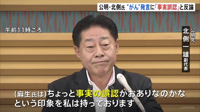 自民党の麻生副総裁が安全保障関連3文書の改定をめぐり、公明党幹部が“がん”だったと批判したことについて、公明党の北側副代表は「事実誤認がある」と反論しました。自民党の麻生副総裁は24日、岸田政権が去年1…