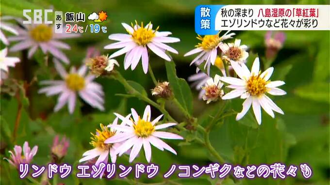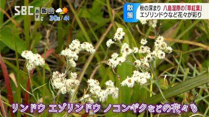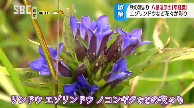 一帯ではリンドウやエゾリンドウ、それにノコンギクといった花々が咲き、湿原の秋に彩りを添えています。