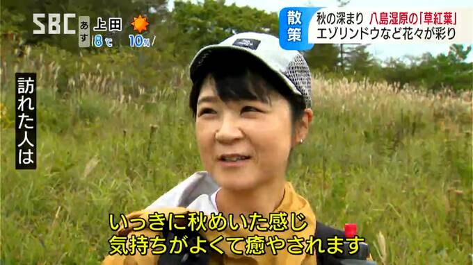 下諏訪町と諏訪市にまたがる八島湿原(やしましつげん)で、下草が黄金色に色づく「草紅葉(くさもみじ)」が始まり、秋の深まりを感じさせています。