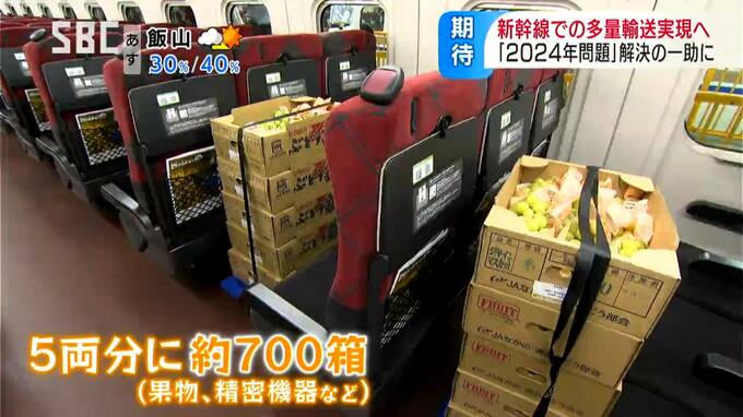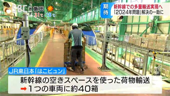 JR東日本が行っている新幹線を使った荷物の運搬で、長野県内ではこれまでで最も多くの荷物を載せた試験輸送が行われました。