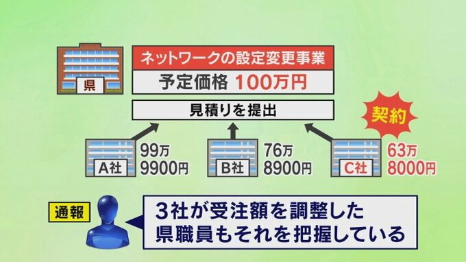 しかしこれに対して参加企業のグループ会社から県に「3社が受注額を調整した」「県職員もそれを把握している」といった内容の通報がありました。