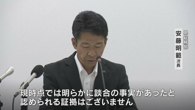 現時点では明らかに談合の事実があったと認められる証拠はございません。県に損害が発生したとは言い難く、その立証も困難。